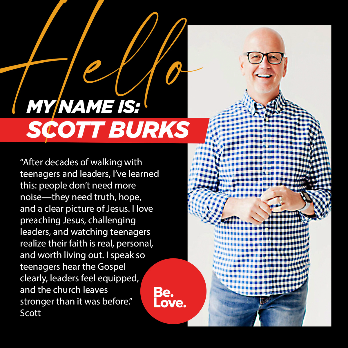 Meet Scott Burks … With a passion for connecting with teenagers and a knack for making faith fun and relevant, Scott has spent over 40 years guiding young hearts towards Jesus. Known for his engaging speaking style and infectious enthusiasm, Scott lights up every room with his humor, wisdom, and genuine love for the next generation. Whether he's sharing a powerful message or leading a spirited discussion, Scott’s unique blend of storytelling and practical insights leaves a lasting impact. Join Scott on a journey of faith, fun, and life-changing discovery – because with Scott Burks, we’re going to make a lasting difference!